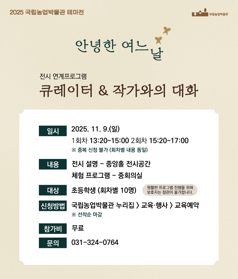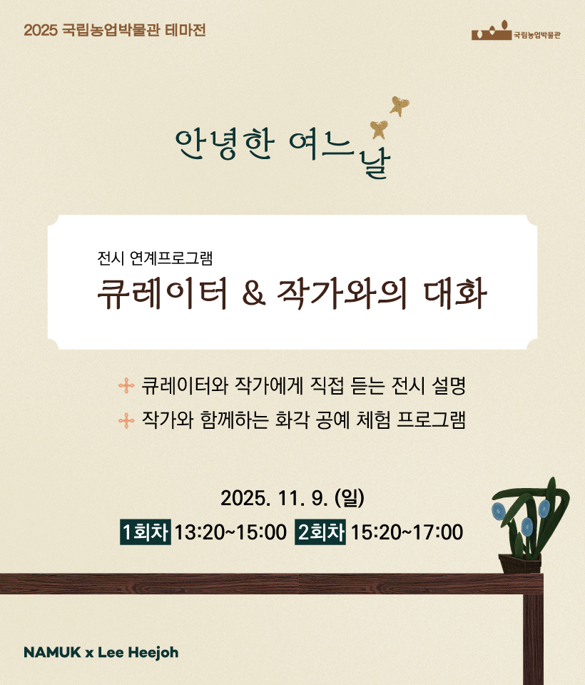 1. 프로그램명 : 2025 테마전 <안녕한 여느 날> 전시 연계프로그램 '큐레이터 & 작가와의 대화'
